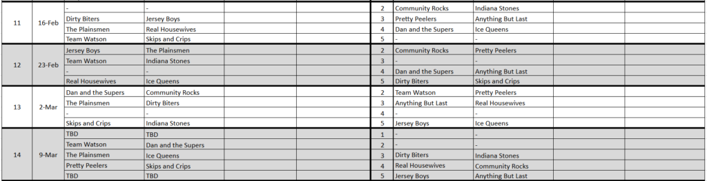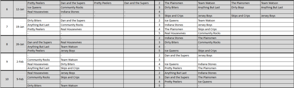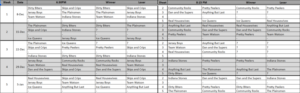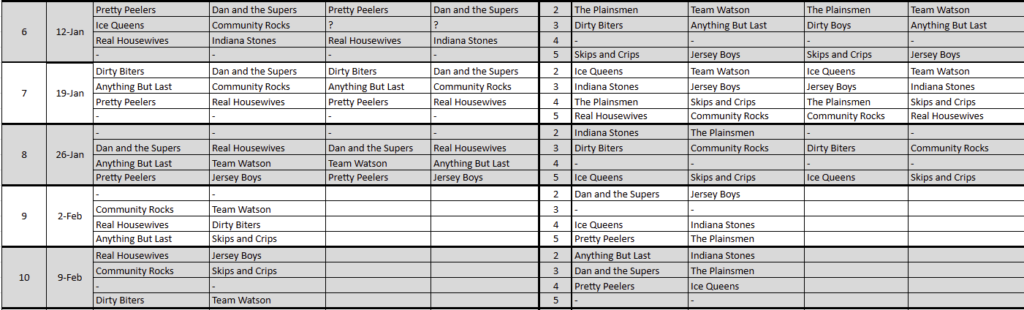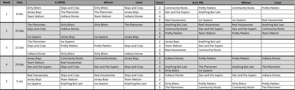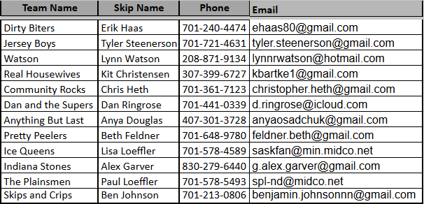 Please continue below for standings and skip contact info