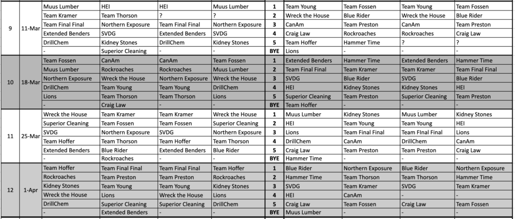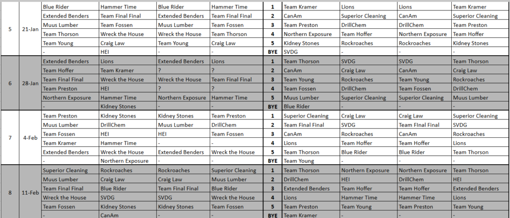 Info On Wednesday Night League